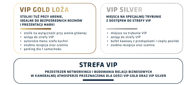 Naszych gości VIP zapraszamy do dwóch ekskluzywnych stref - sportowe emocje nigdy nie były bliżej!
